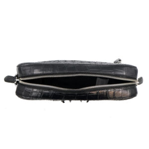 Finished with smooth leather trim and polished silver-tone hardware, the bag features a spacious interior designed to keep your essentials secure and organized. The prominent natural scales of the crocodile leather ensure that each piece is a unique statement of elegance and power.